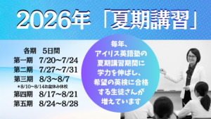 毎年、普段のレギュラーレッスンで時間が足りない生徒さん達が、アイリス英語塾の夏期講習期間に更に学力を伸ばし、英検に合格するなど希望を叶える生徒さん達が増えています。